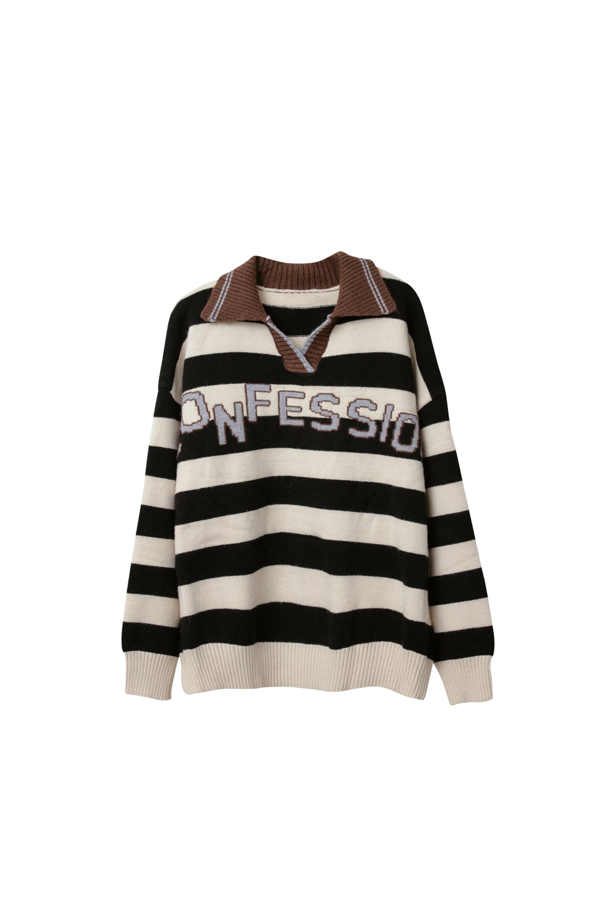 Meet your new favorite layering piece—the Ellie Varsity Knit Sweater. This oversized henley features a bold striped design that makes a statement, with a relaxed fit generous enough to wear as a dress. The collar adds a classic touch while the roomy silhouette keeps things effortlessly cool. Perfect for throwing over basics or styling solo for that coveted oversized look.