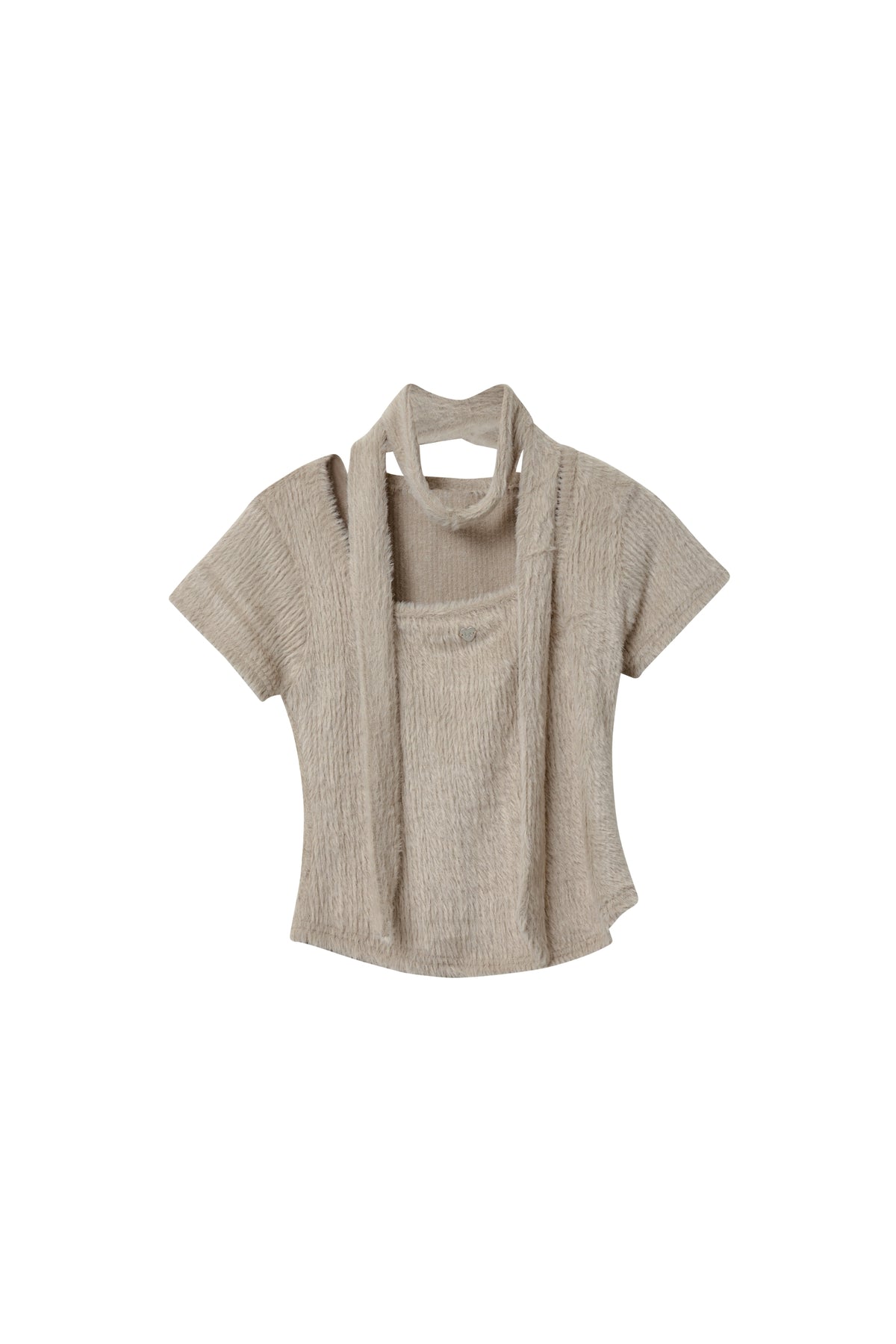 Cozy up in this adorable fuzzy crop top that's all about that snug, flattering fit. The cap sleeves keep things cute and casual, while the plush fabric begs to be touched. Bonus: it comes with a matching skinny scarf that's perfect for layering or styling however you want. Your new go-to for effortless, huggable vibes.