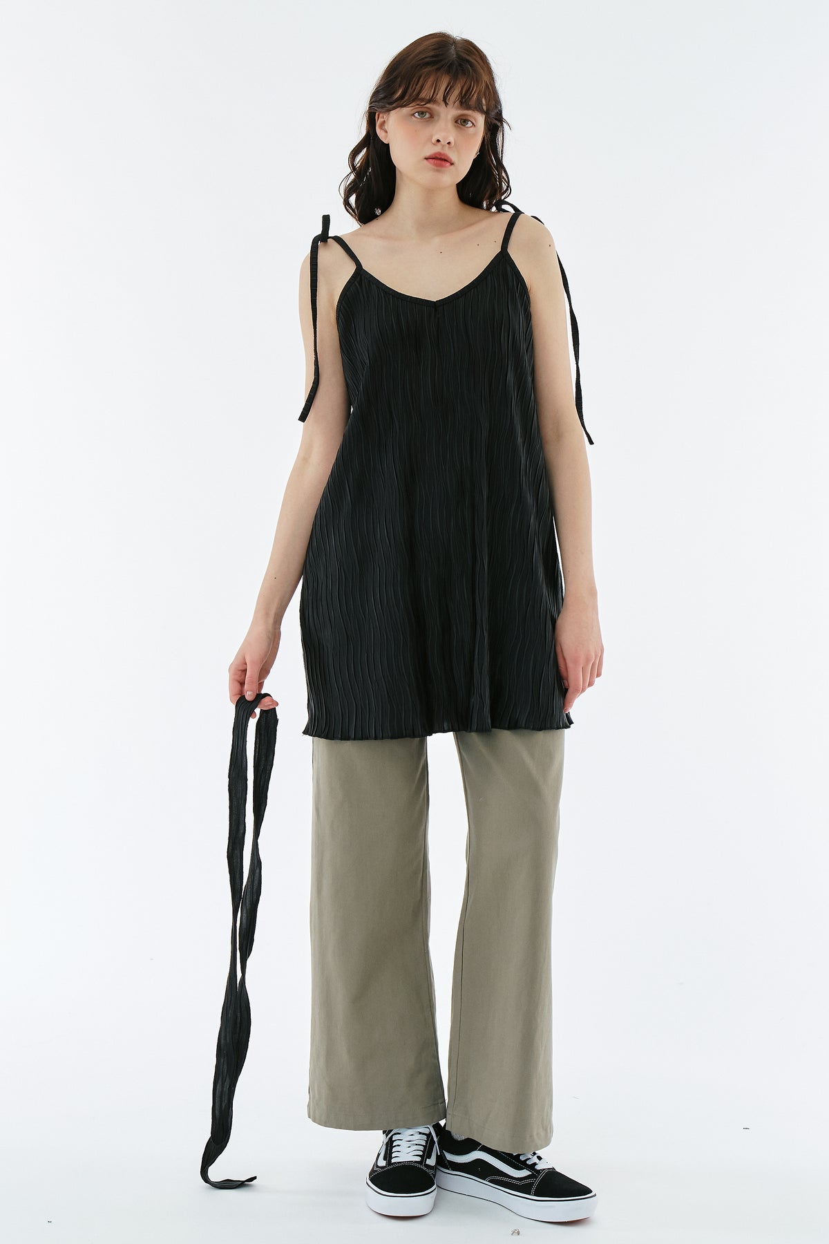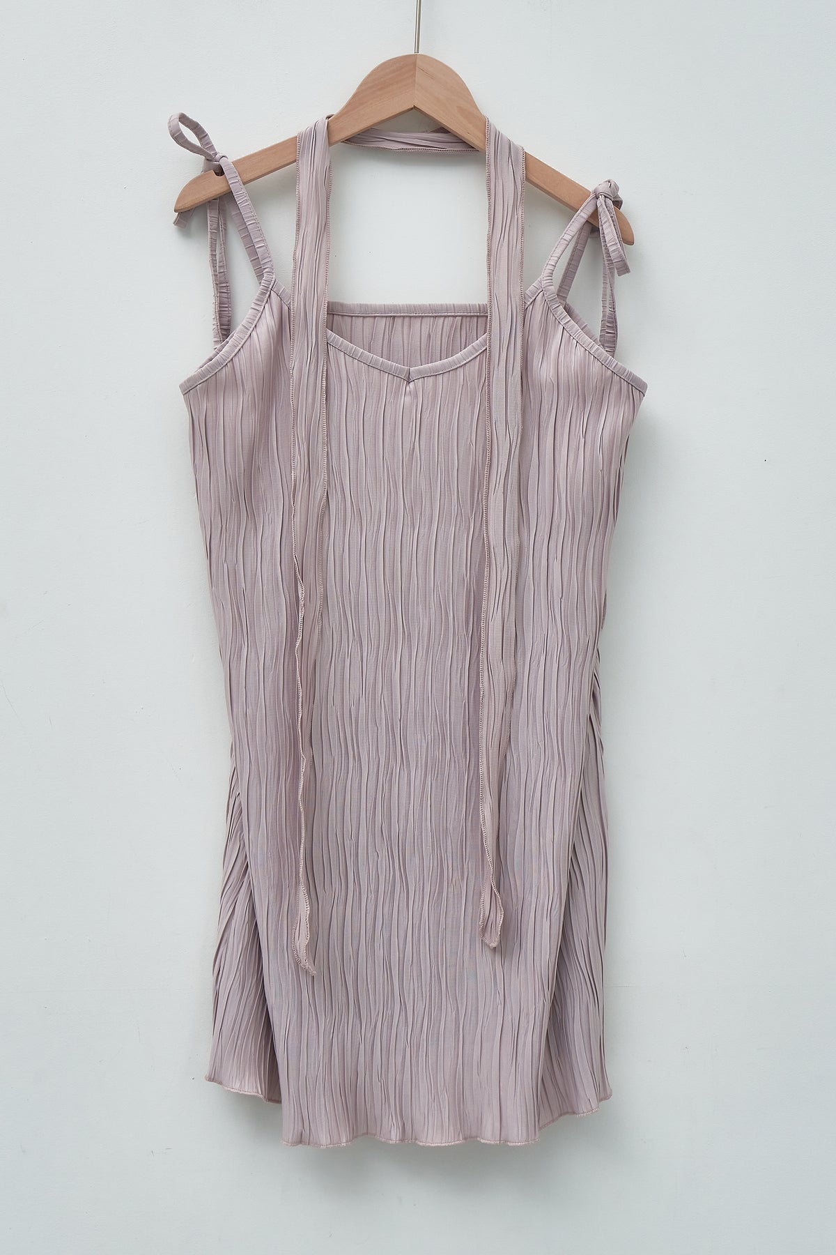 • Introducing the Angel Slip Dress - the perfect balance of heavenly softness and feminine beauty. Made with lightweight and flowy plisse fabric, this dress is perfect for any occasion. Complete the look with our versatile scarf (or belt) for added style and versatility.